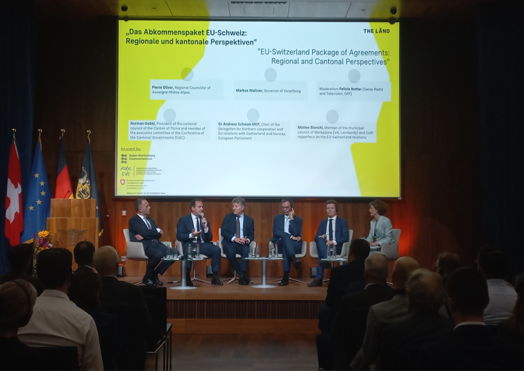 La Région, invitée par le Bade-Wurtemberg et la Conférence des Gouvernements cantonaux (CdC), à l'évènement intitulé "Le paquet d'accords EU-Suisse : Perspectives régionales et cantonales" était représentée par Pierre Oliver, conseiller régional délégué aux fonds européens.