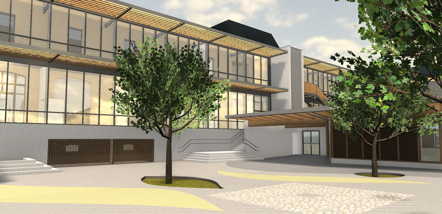 - Agrandissement des espaces par la construction d’une extension et d’une passerelle pour permettre la création de nouvelles salles de classes.
